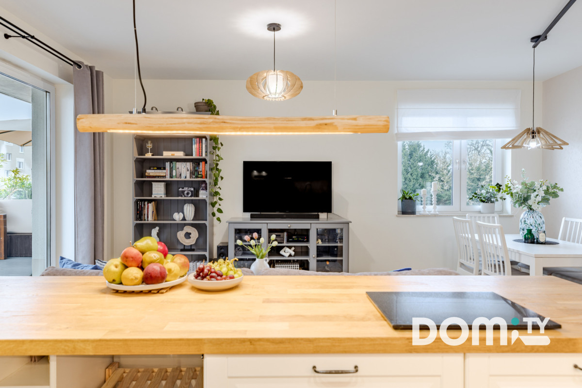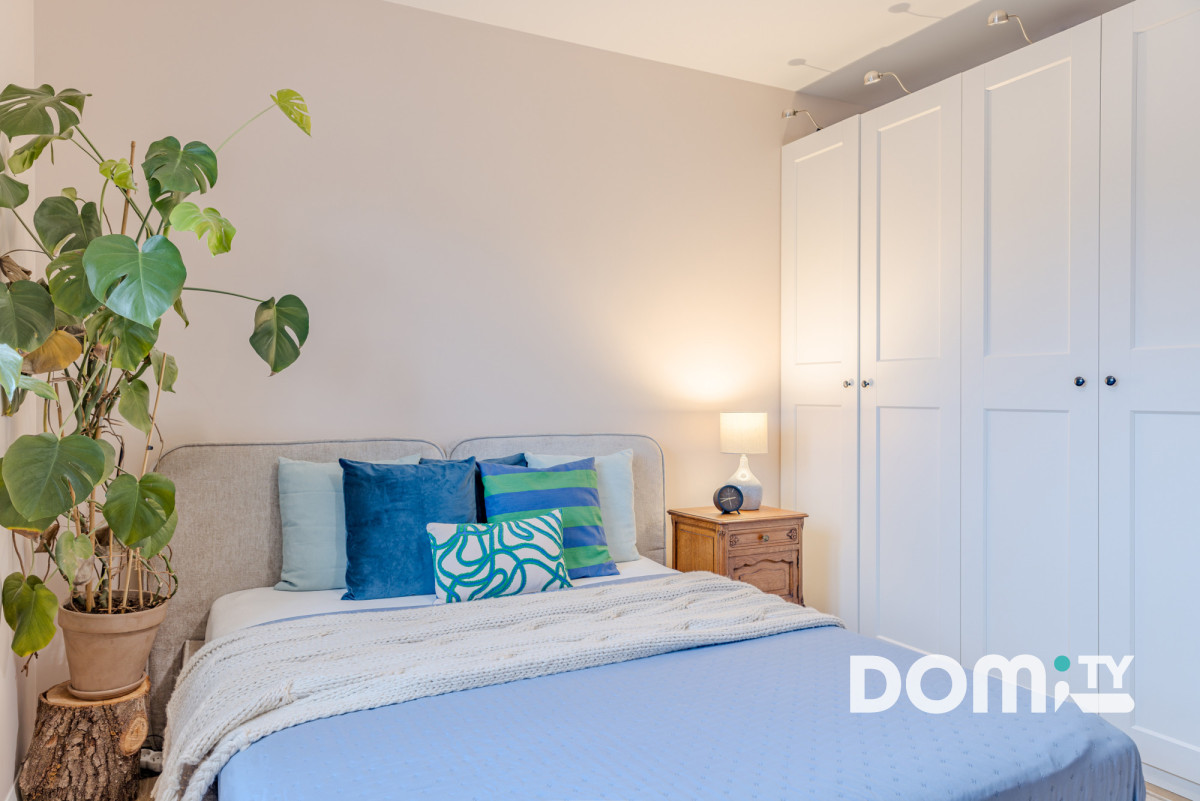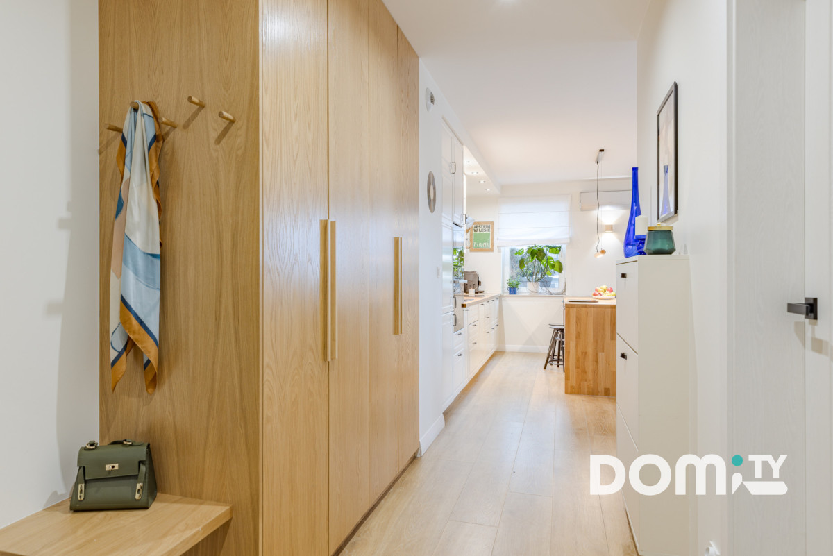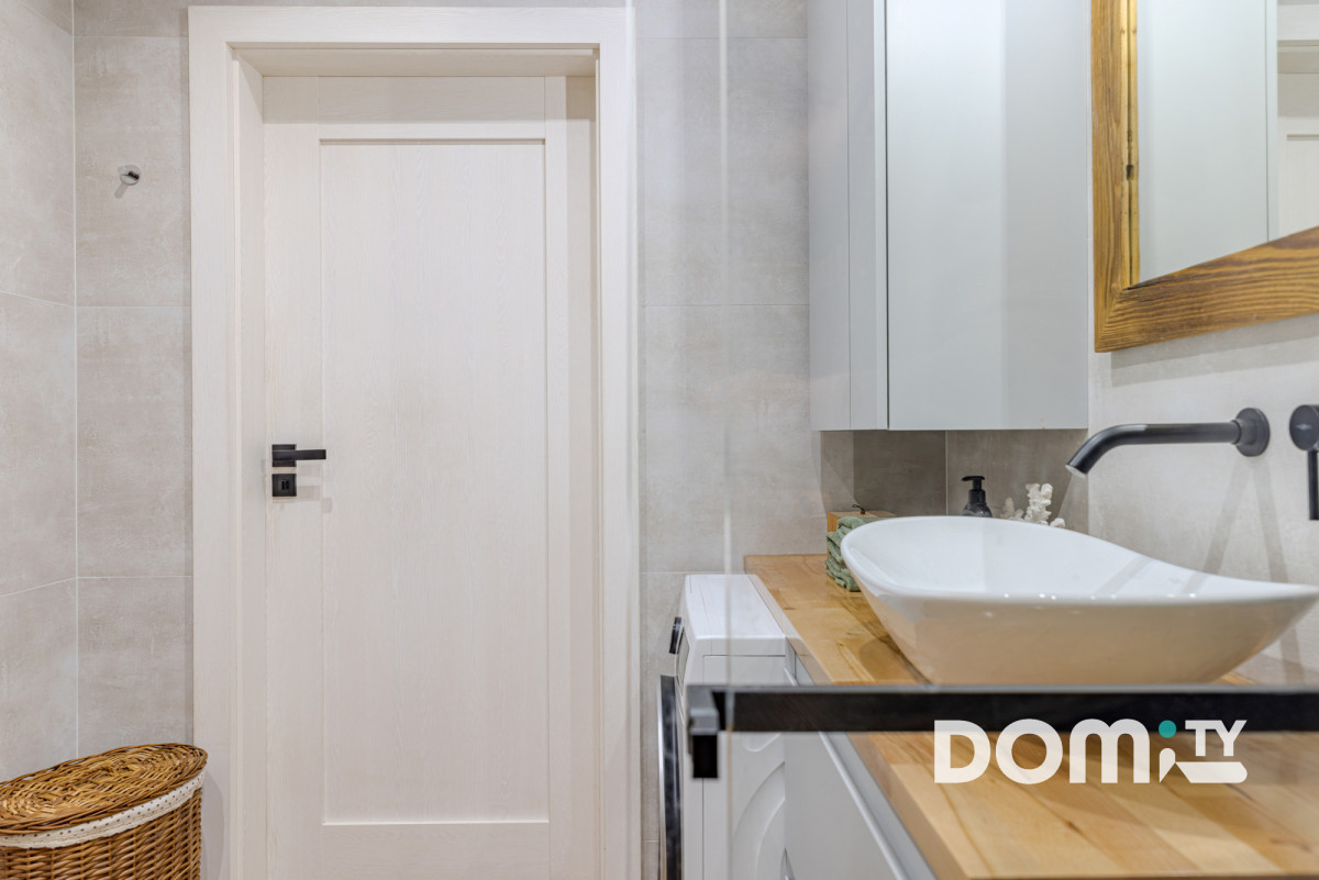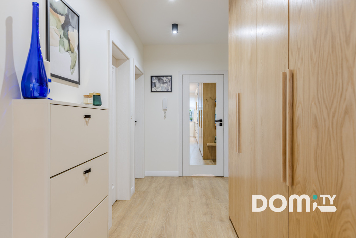 Lokal został wykończony w 2022 roku w standardzie premium z dużą dbałością o jakość materiałów i detale. Meble na wymiar, duża ilość szaf do przechowywania, ogrzewanie podłogowe podłączone bezpośrednio do sieci grzewczej budynku, klimatyzacja, wysokiej jakości panele wodoodporne Quick-step, ceramika łazienkowa Paradyż, armatura, drzwi wewnętrzne Porta, okna 3-szybowe. Całe mieszkanie razem z sufitami zostało odmalowane w lipcu 2025 roku, jest niezwykle zadbane, gotowe do wprowadzenia bez ponoszenia dodatkowych kosztów.